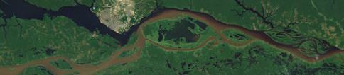 Detalhe da Bacia Amazônica, mostrando o encontro das águas dos rios Negro e Solimões (Amazonas)